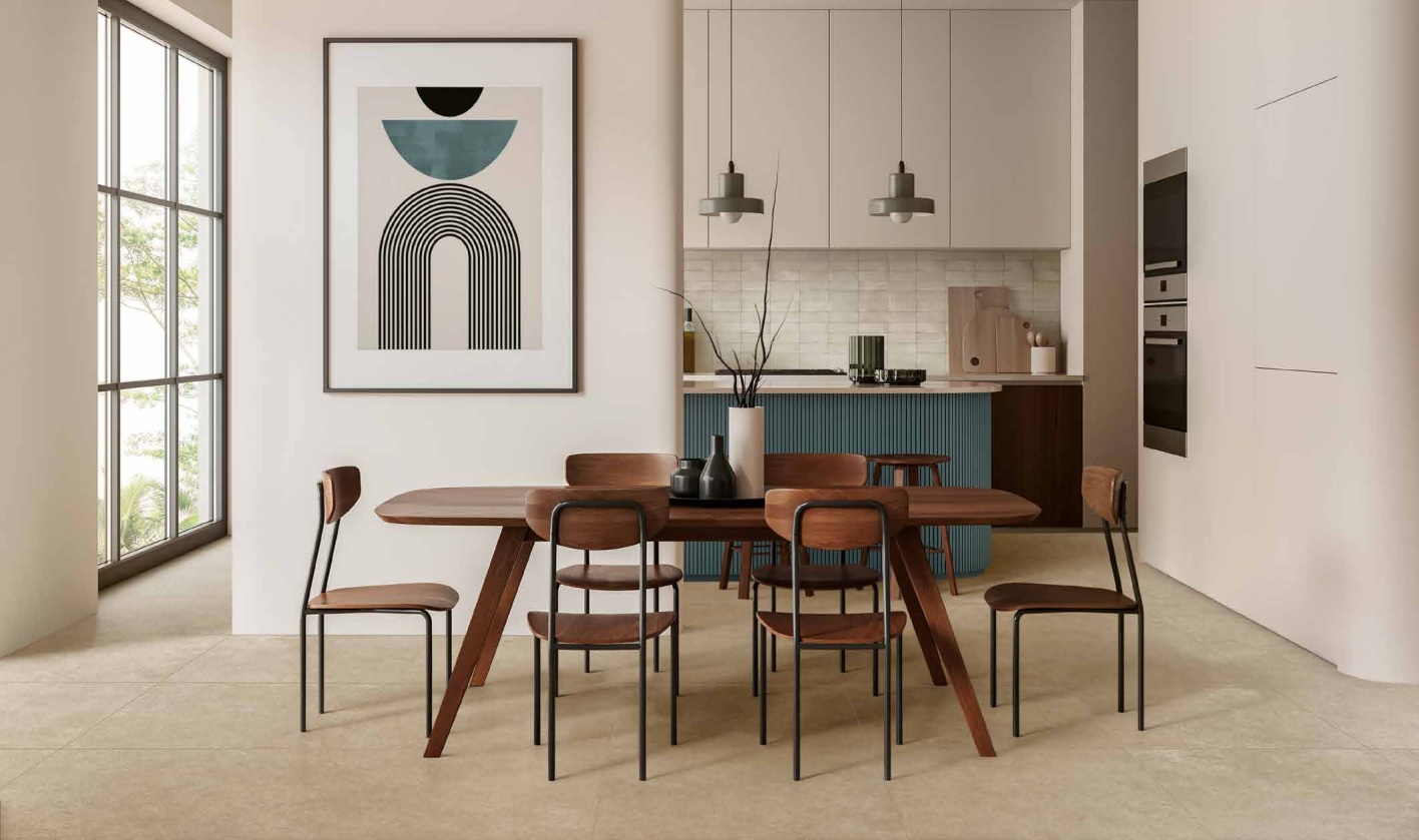 Son esthétique douce et équilibrée évoque la sobriété élégante des pierres méditerranéennes, tout en bénéficiant de la technologie du grès cérame pour une résistance optimale.