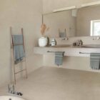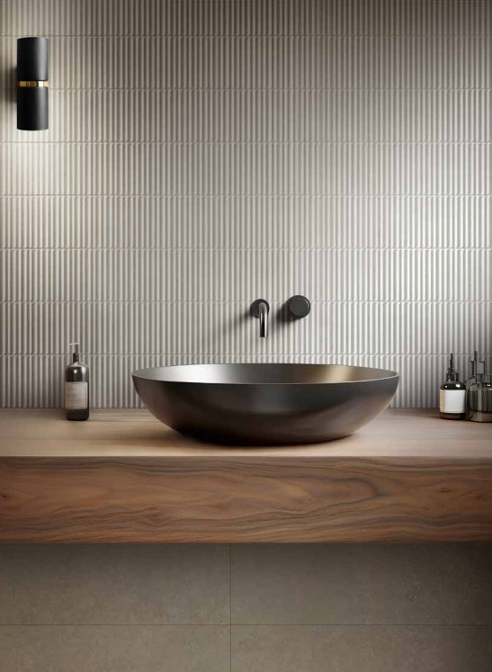 Les formats en grès cérame 45×45, 30×60, 60×60, 60×120 et 100×100 cm sont proposés avec une finition mate et une version antidérapante, garantissant sécurité, durabilité et confort d’utilisation dans toutes les zones de passage, y compris les pièces humides ou extérieures. La faïence 30×90 cm, quant à elle, habille les murs avec la même harmonie visuelle, apportant lumière et pureté aux surfaces verticales.